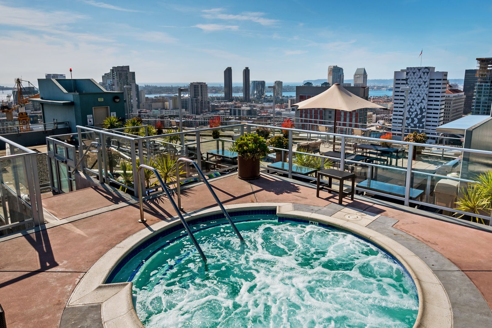 Modern 1 bedroom at Smart Corner! Enjoy wood-textured ceramic tile flooring throughout, a spacious private balcony, cement accents creating a loft-like feel and a contemporary ceiling fan above the living area. The kitchen features an upgraded tile backsplash, granite counters, pendant lighting, and an eat-at counter ideal for casual dining. conveniently located near the 163 freeway, I-5, Highway 94, Petco Park, the Gaslamp Quarter, and Balboa Park. A trolley station located directly below the building ensures Smart Corner has all an urban dweller could want. Amenities include a roof-top sun deck with spa, a barbecue area, gym, and wet bar on the 20th floor, and fully-equipped exercise room. Welcome home! 1 Secured parking space inlcuded. Small pet may be allowed with restrictions and additional deposit.