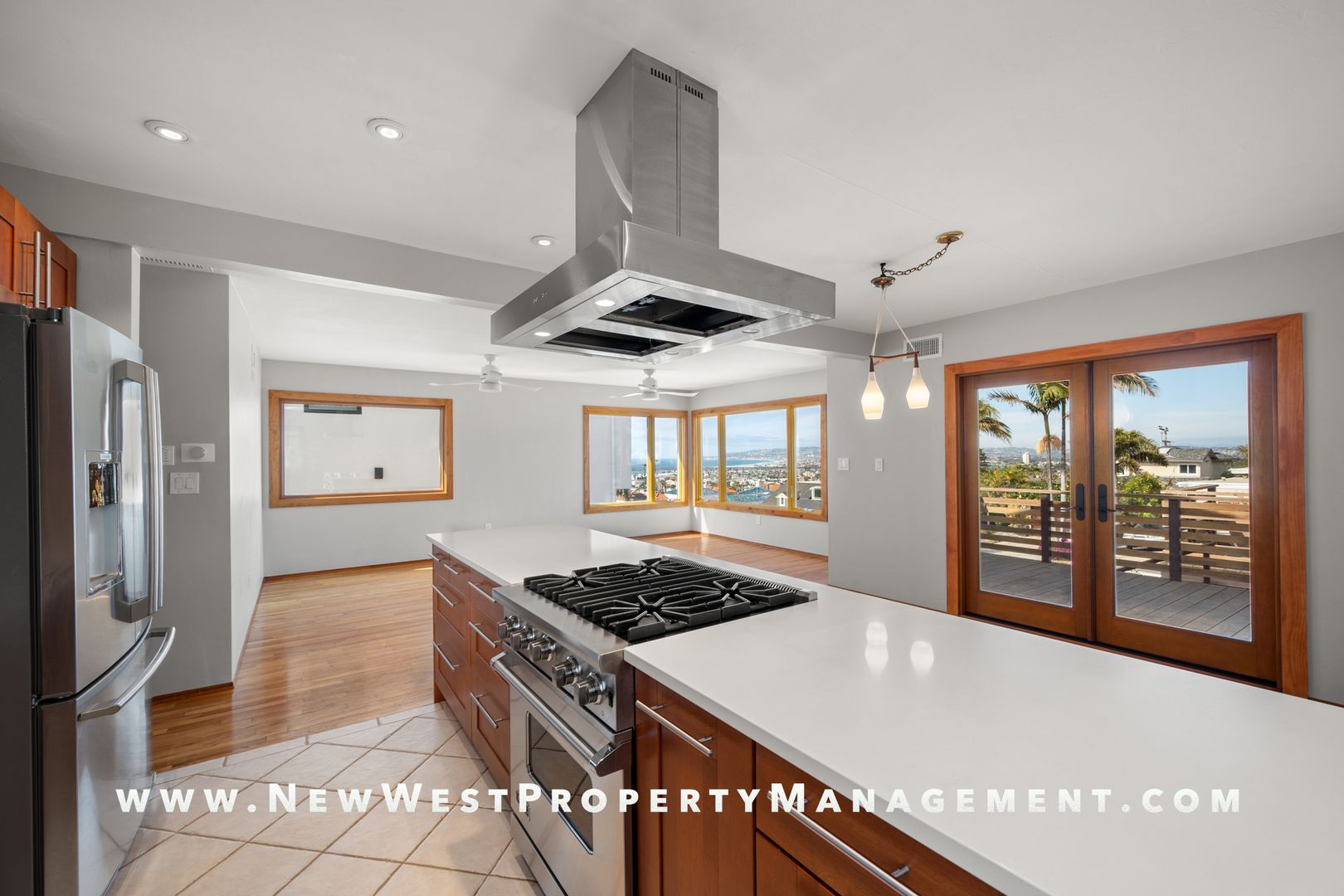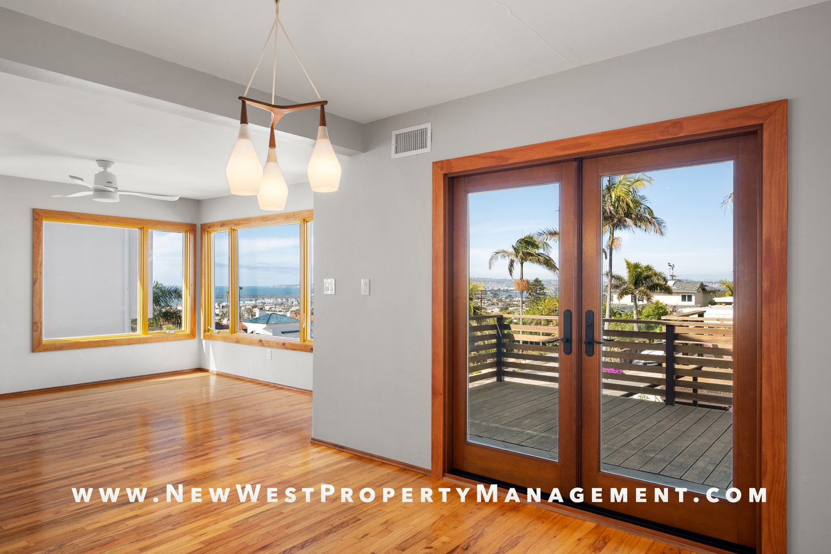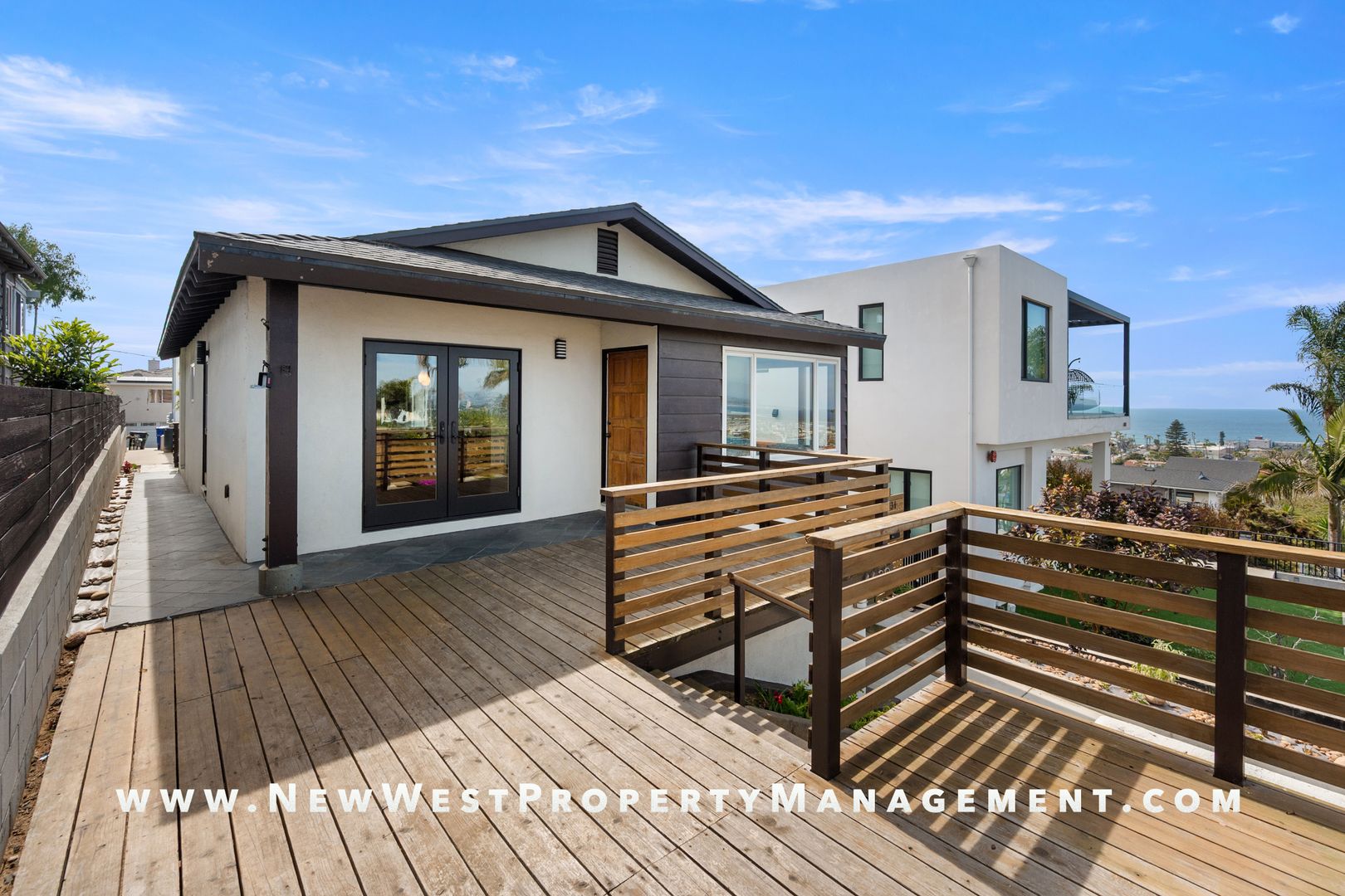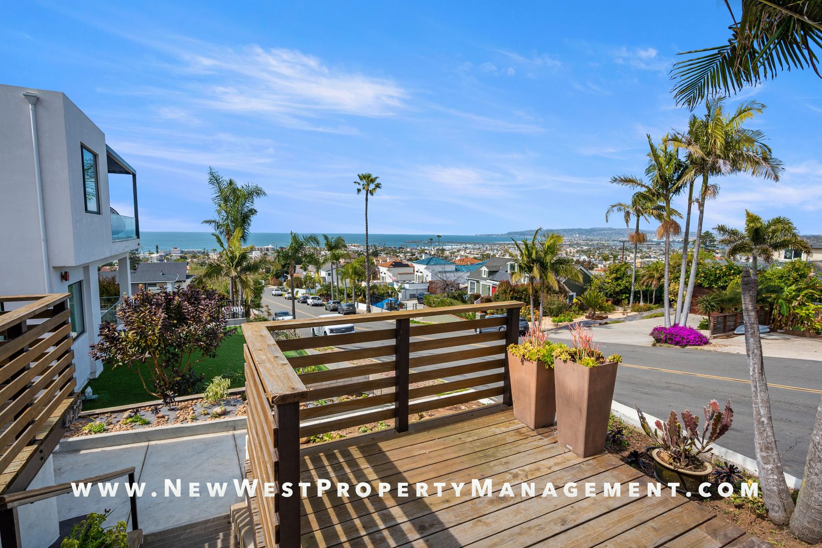 Renovated upper Ocean Beach 2 bedroom + bonus office/den/exercise room, offers magical views that will sweep you off your feet! Panoramic ocean and bay vistas captivate from multiple viewing points. Open floorplan is perfect for cooking, dining, and entertaining. Residence includes hardwood flooring, neutral paint tones, and custom lighting throughout. The gourmet kitchen features Viking gas range, Bosch dishwasher, Electrolux counter-depth refrigerator, rich cabinetry with plenty of storage and gleaming quartz countertops. Enjoy the cool ocean breezes or dine al fresco on the back deck with views of Sunset Cliffs! Walk to dining, shopping, entertainment, and the beach! One car garage, central AC, and washer/dryer included. Available for immediate occupancy. Sorry, no pets. Support animal only with acceptable documentation. Tenant pays gas, electricity, and one half of shared water bill.