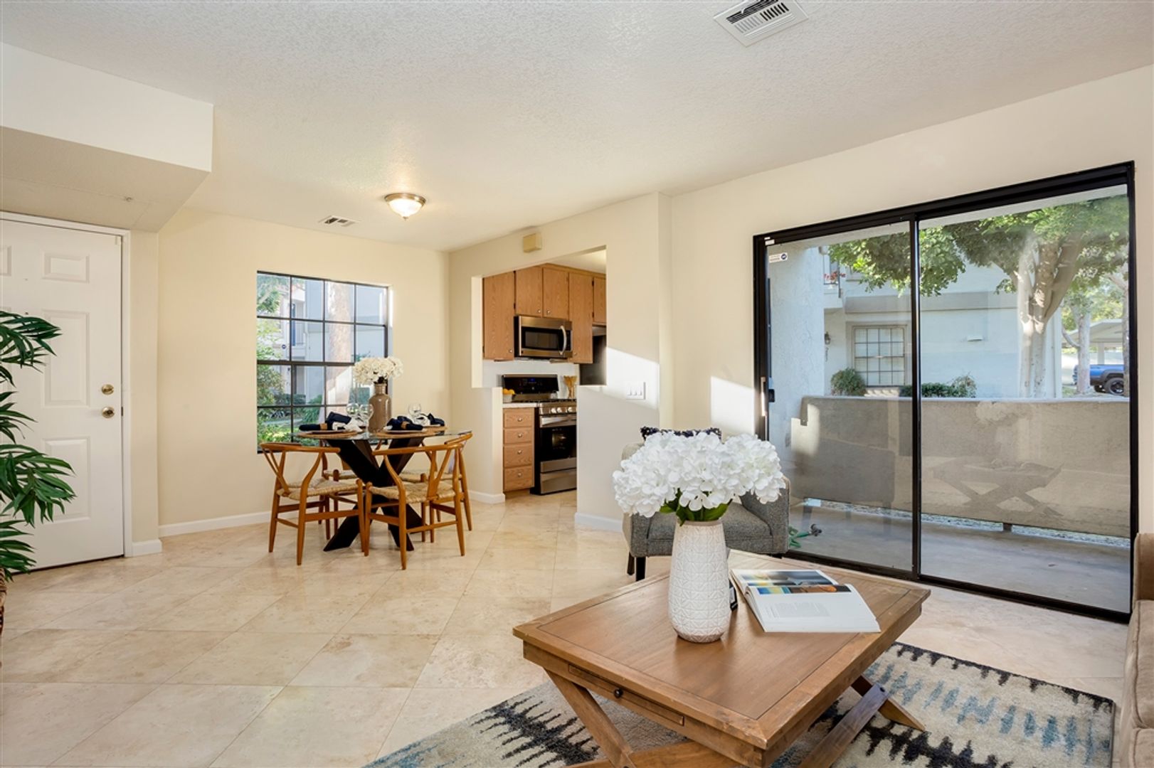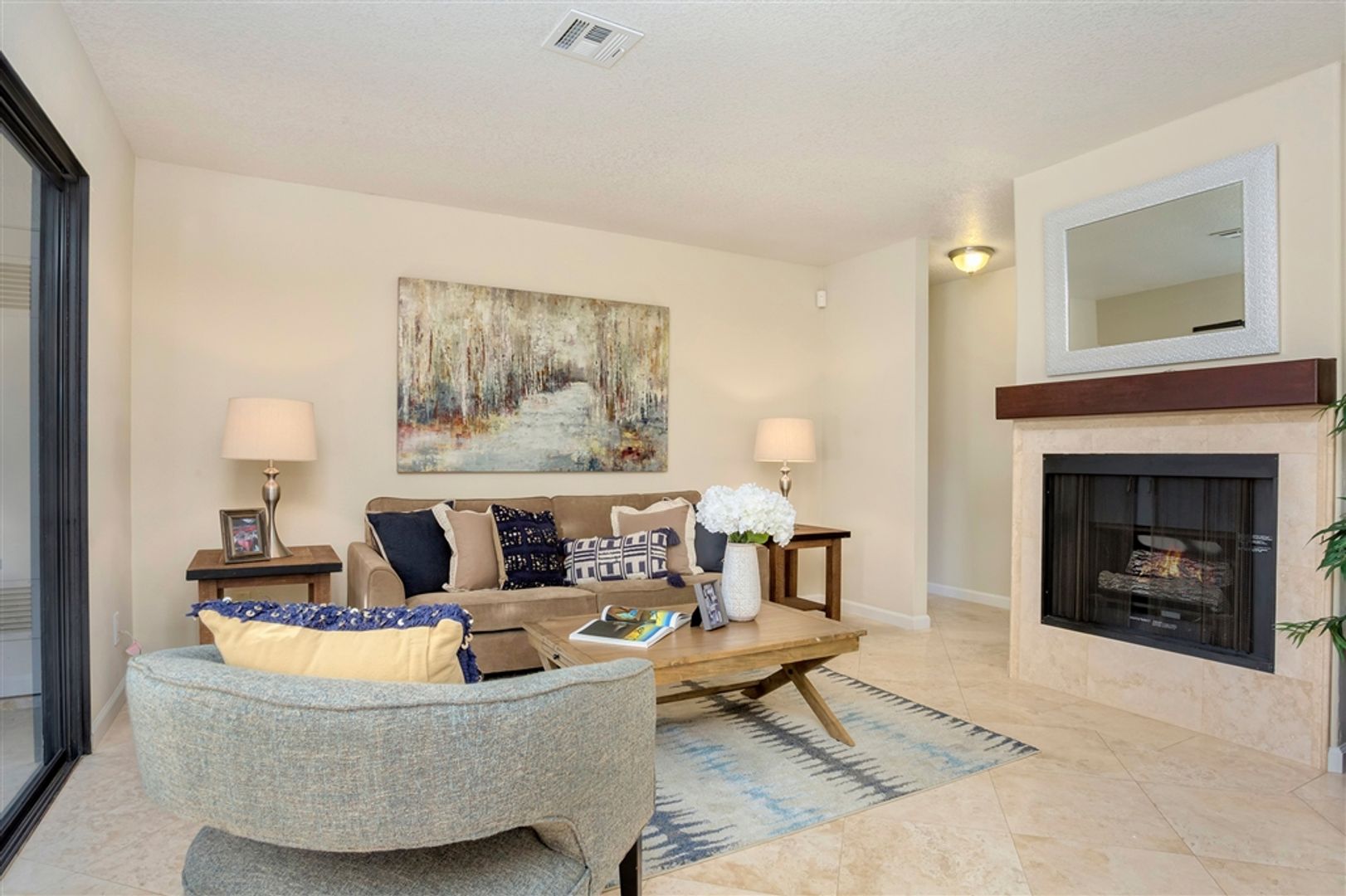 Welcome Home! Beautifully upgraded Rancho Penasquitos 1st floor condo in the highly desirable community of Terra Vista. This stunning property features an open floor plan with fresh neutral paint and trim, a cozy fireplace, durable tile flooring throughout, lots of storage, and in-unit washer and dryer. The kitchen boasts quartz countertops and sleek stainless-steel appliances. Residence includes a large primary suite with en-suite bathroom and two closets. Outdoor living has been extended just off the living room with a large, covered patio to take in the evening breezes. Community amenities include a fitness center and sparkling pool and spa! Conveniently located and just minutes away from shopping, dining, golf amenities, parks, Interstate 15, and Highway 56, plus so much more. Don't let this opportunity pass you by! 1 designated parking space and 1 open space included. Small pet may be allowed with restrictions and additional deposit. Available for immediate occupancy.
