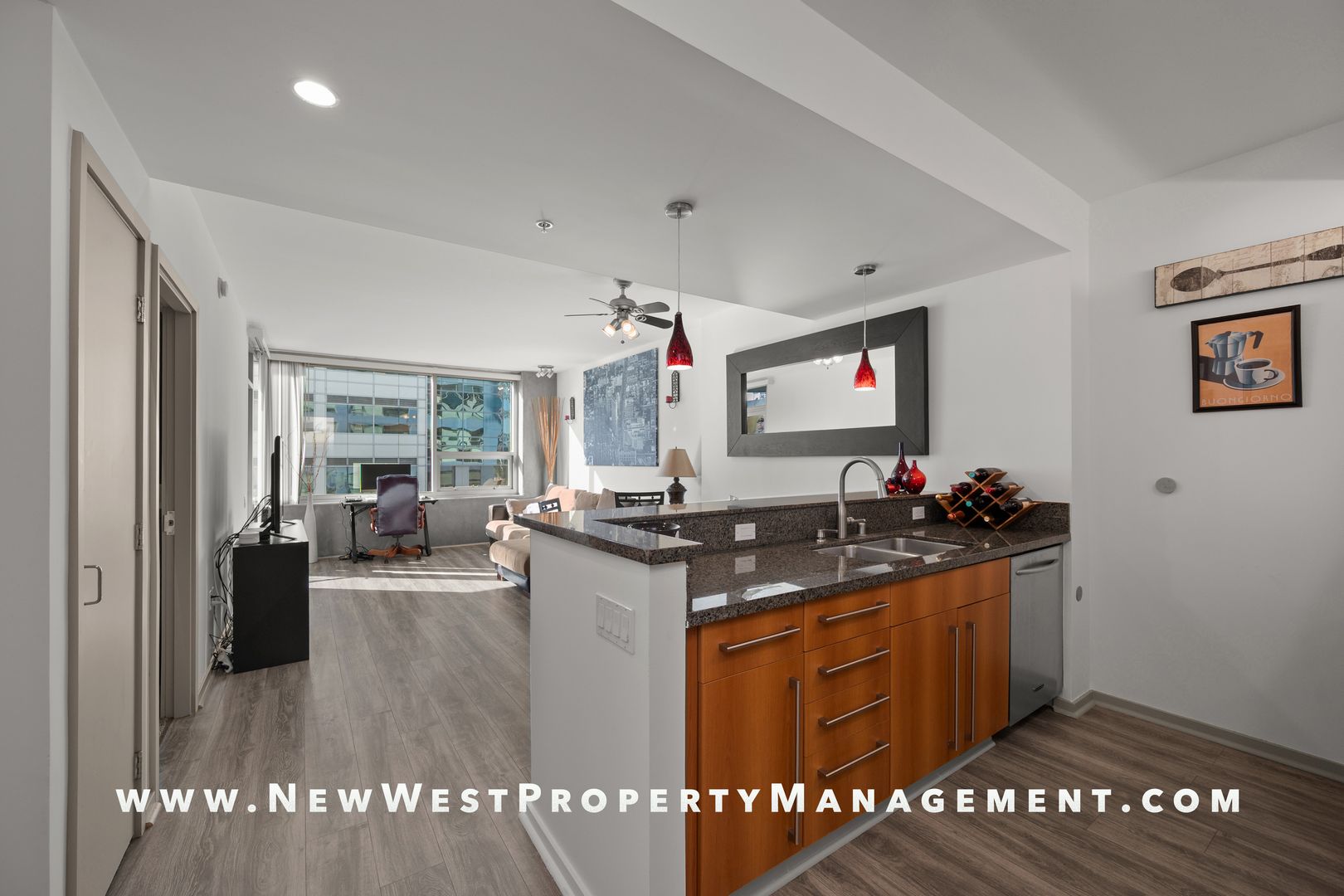 Welcome to ICON! West-facing residence offers a private balcony with a view into the iconic Petco Park, home of the San Diego Padres: make summertime memories from the comfort of your home. The open kitchen boasts sleek granite countertops, stainless appliances, ample cabinetry, and a convenient eat-at bar illuminated by stylish pendant lighting. Main living area features brand-new laminate flooring, creating a seamless flow from the kitchen. Additional highlights include fresh paint, cooling ceiling fans, storage space, and a secured parking spot. Icon is perfectly situated just steps from East Village’s premier dining, entertainment, shopping, and Petco Park - home of the electrifying San Diego Padres! The complex boasts a number of fantastic amenities, including the truly one-of-a-kind roof-top SKY BOX. Available only to ICON owners and guests, this amazing view deck features gathering spaces and ample seating with captivating views directly into Petco Park and the Downtown San Diego cityscape! Other top-notch common areas include a lavish party lounge with kitchen, a fully equipped exercise room, and a theater room.